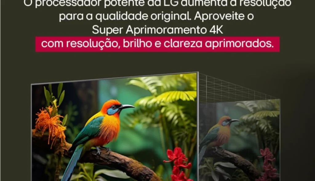 - Qualidade de Imagem: Super Aprimoramento 4K que traz vida a cada cena.